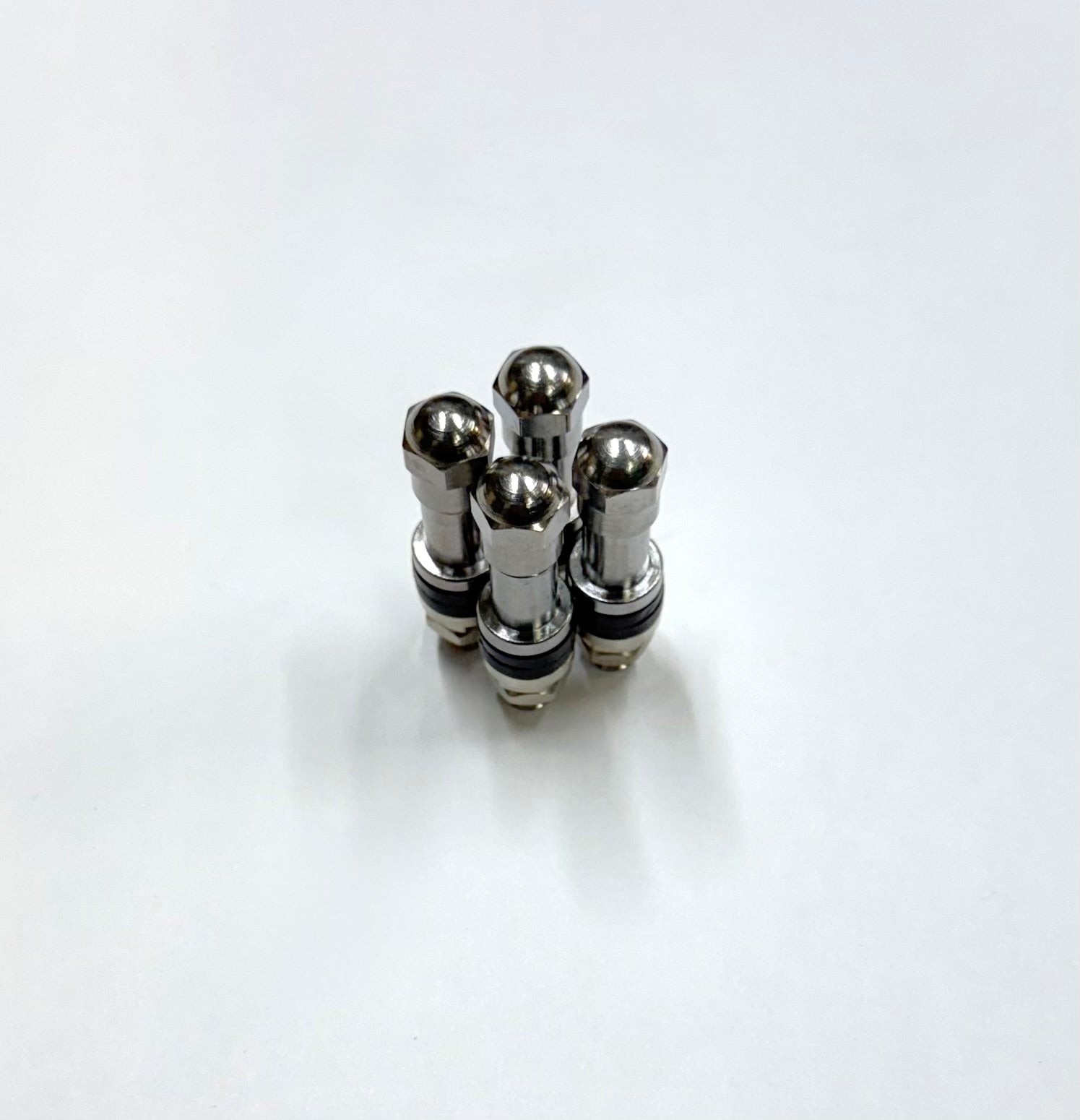 - Four chrome-plated steel valve stems